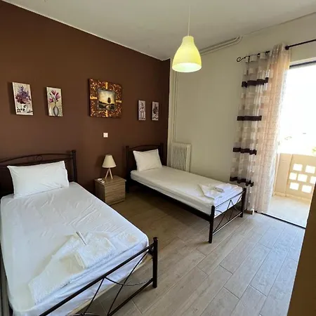 Along with tea and coffee making equipment, the apartment boasts a full kitchen featuring a refrigerator, an oven, and glassware. Kalithea bus station is within walking distance of the 102 m^2 apartment.